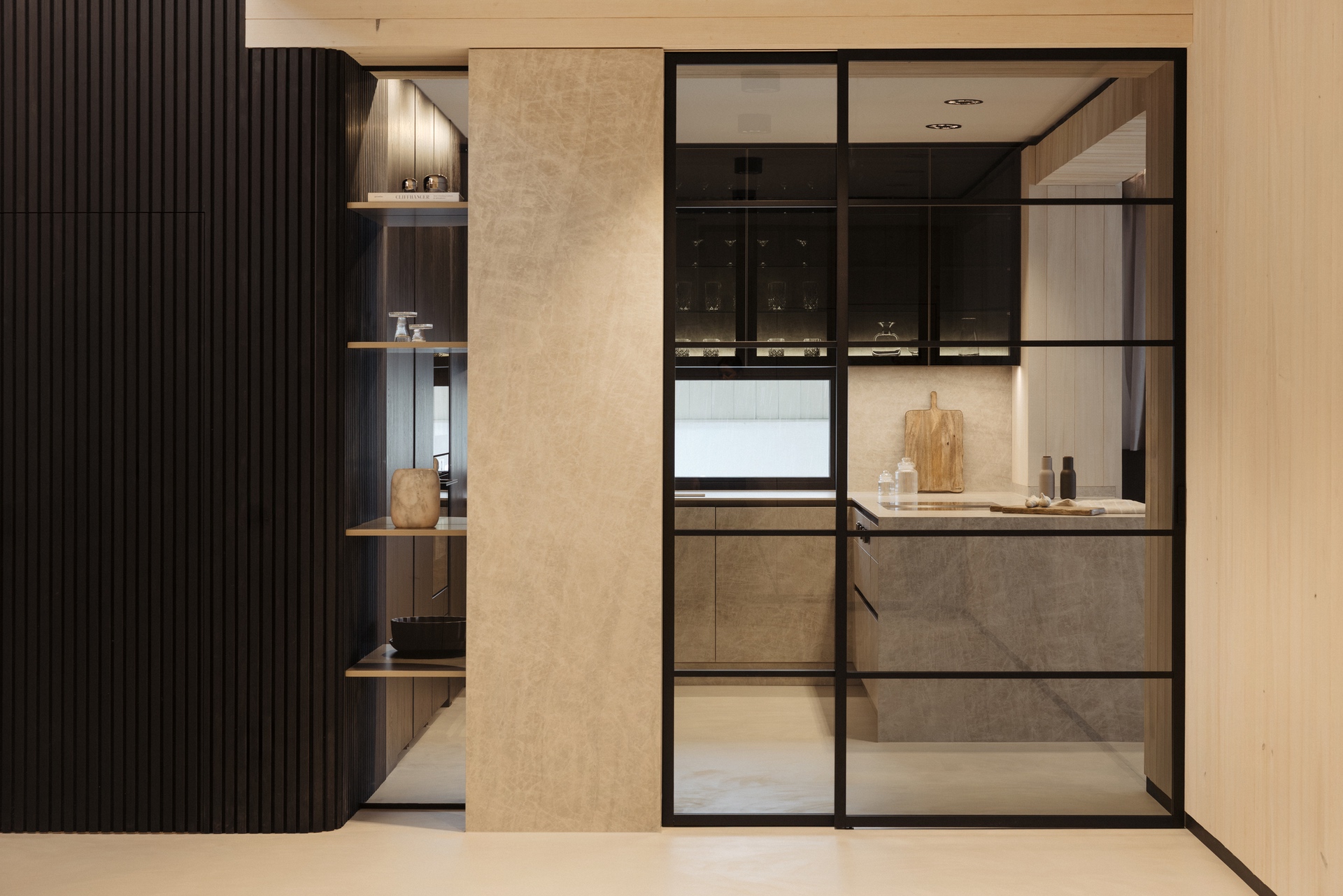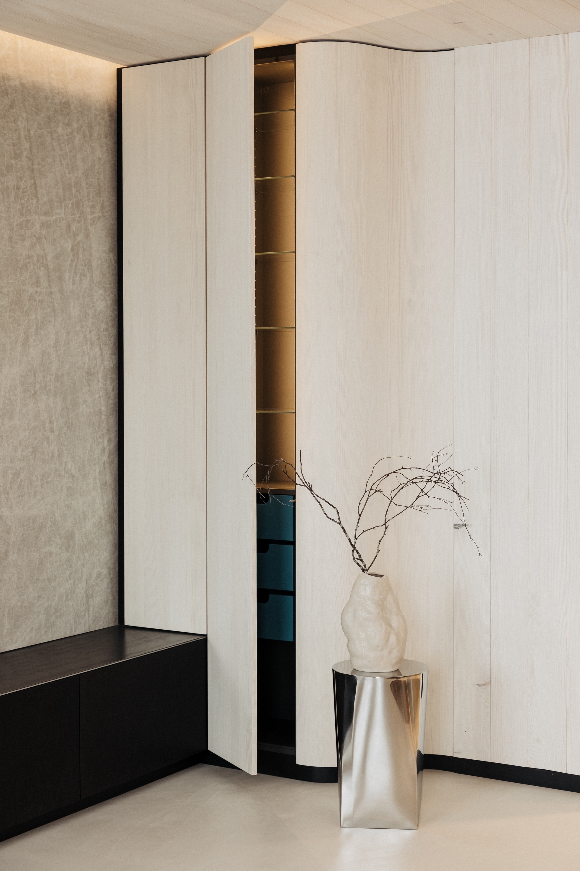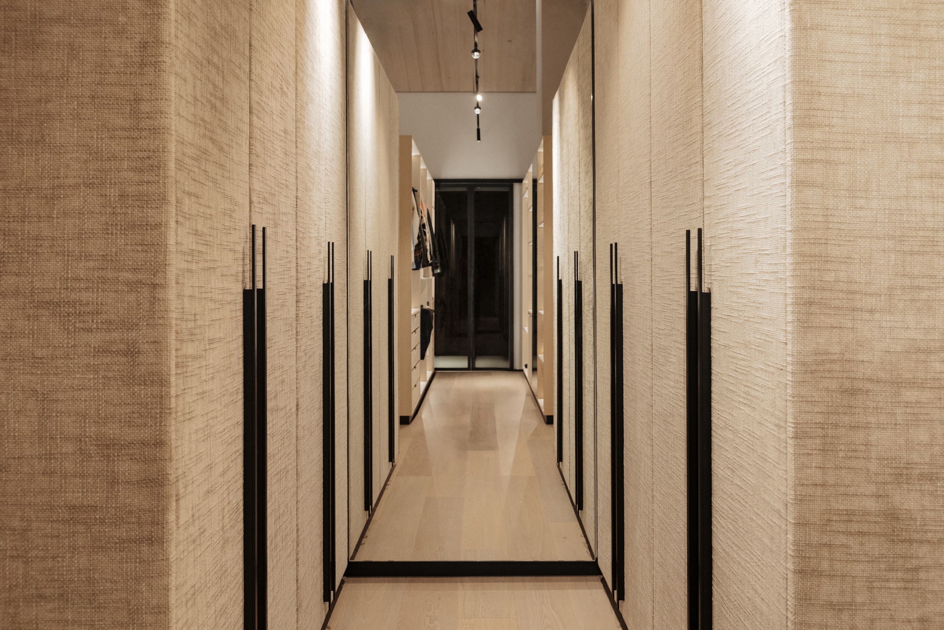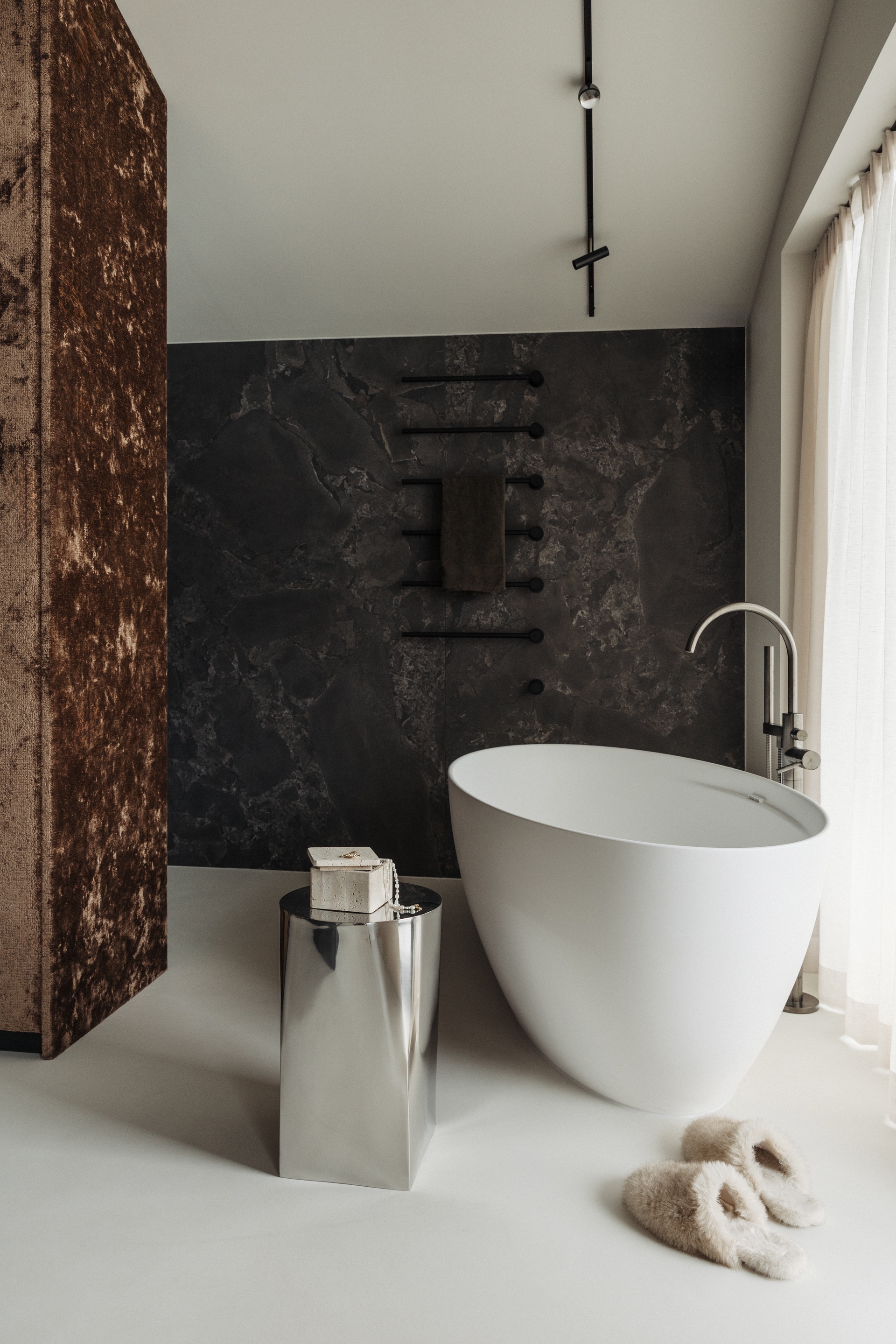 Eingebettet in die alpine Landschaft verbindet dieses Einfamilienhaus traditionelle Materialien mit zeitloser Architektur. Das von uns umgesetzte Innen- und Außendesign wird durch eine gehackte schwarze Holzfassade und eine handgemauerte Steinfassade mit organischer Fügung geprägt. Auch die komplette Innenarchitektur stammt von Stilhauer-Design und zeichnet sich durch weiß lasierte Weißtanne, Taj-Mahal-Stein in Küche und Hochschränken sowie durchgängige Bodenflächen in natürlicher Zementspachtelung aus. Warme Konjak-Töne in Leder- und handgewebten Stoffen schaffen eine behagliche, elegante Atmosphäre. Sämtliche Materialien und Oberflächen wurden in enger Abstimmung mit der Bauherrschaft sorgfältig bemustert und ausgewählt.